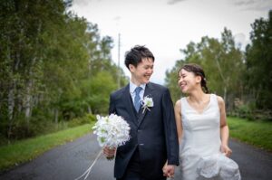 GURURITOの手作り結婚指輪を身につけて、この白樺群生地でウェディングフォトを撮影するーーーー